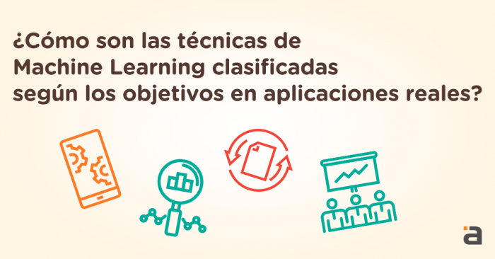 ¿Cómo son las técnicas de Machine Learning clasificadas según los objetivos en aplicaciones reales?